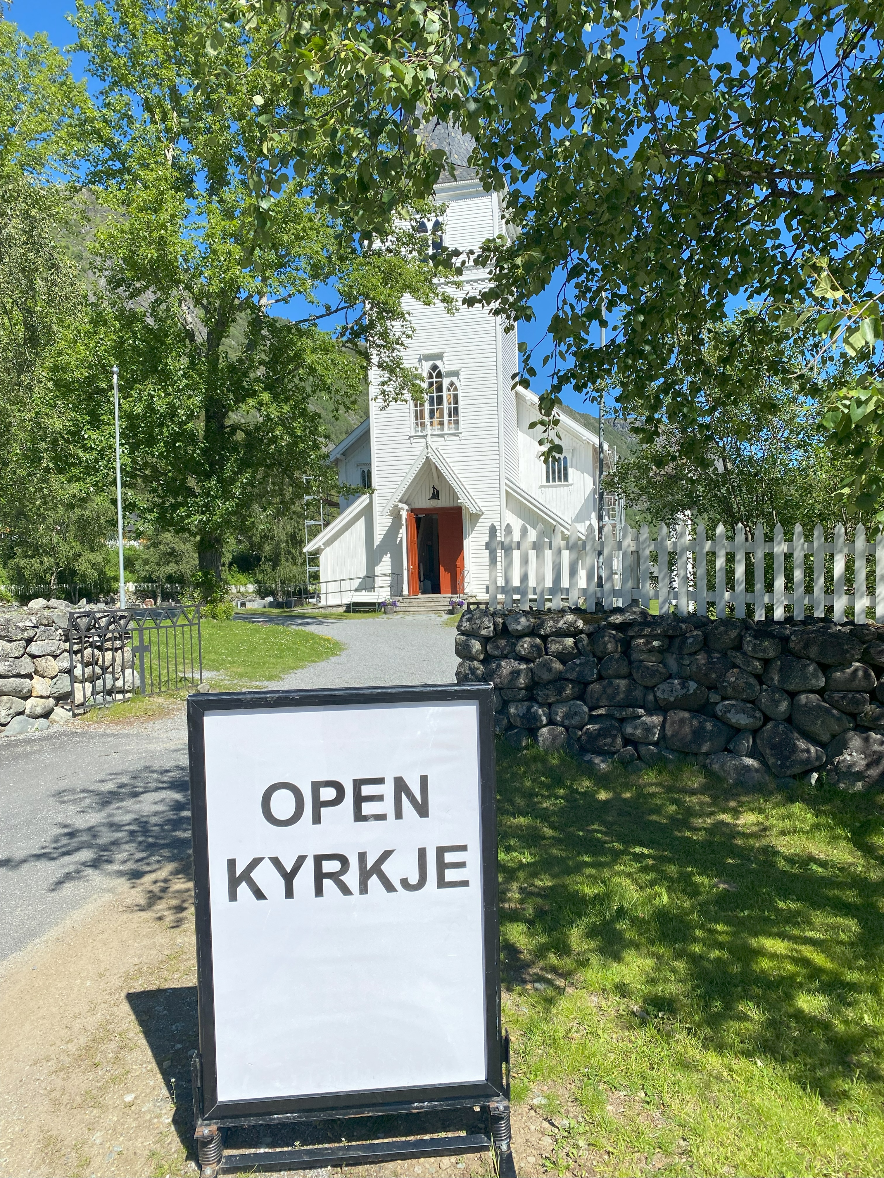 Montags bis freitags vom 30. Juni bis zum 8. August, von 12:00 Uhr bis 16:00 Uhr, werden Sie Fenja oder Syver in der Kirche treffen. Sie werden Sie willkommen heißen und gerne einige Informationen über die Kirche teilen und Ihnen eine Führung geben. Sie haben die Möglichkeit, still zu sitzen und Musik zu hören, ein Gebet zu schreiben, um es in das Gebetsglas zu legen, oder Fotos zu machen. Wir hoffen, dass viele die Gelegenheit nutzen, die Kirche diesen Sommer zu besuchen.